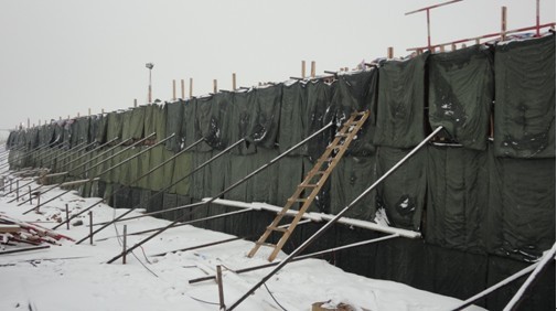 之后涵洞内升起了10个炉火兴旺的火炉,涵洞外挂起了防水布及厚厚的棉被,做好了防寒防冻工作。