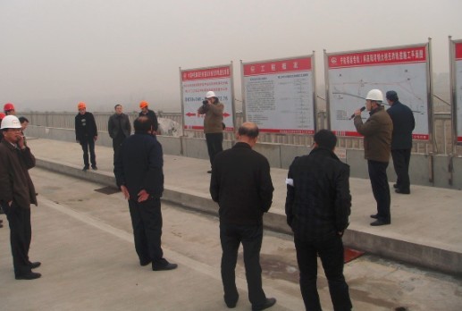 2月18日,南京市安全生产监督局局长丛跃兹在宁杭工指领副指挥长胡金山的陪同下,来到中铁四局南京分公司宁杭客专项目部高阳河特大桥观摩。