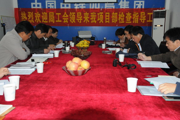2012年11月8日上午,局工会副主席李以文检查组一行5人在公司党委书记丁守皋的陪同下,来到合福项目部检查指导工作。