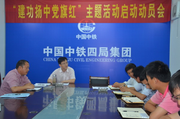 2013年5月14日 “建功扬中党旗红” 党建主题活动启动动员会在扬中项目部召开,公司总会计师权循超,党群工作部部长吴兴旺莅临会议。