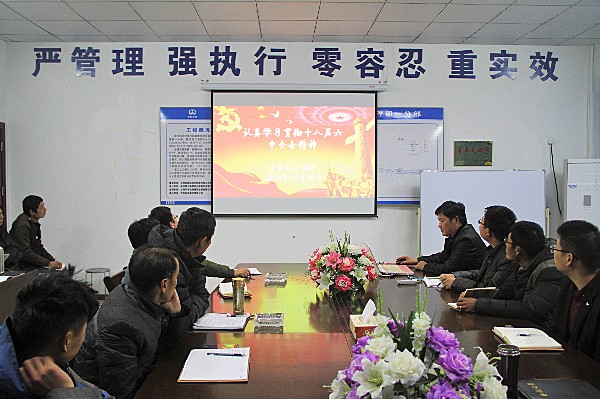 11月28日,连镇铁路项目部党委召开了关于认真学习宣贯党的十八届六中全会会议精神的专题会议,项目部全体16名党员和入党积极分子参加会议。会议由项目党委书记主持。