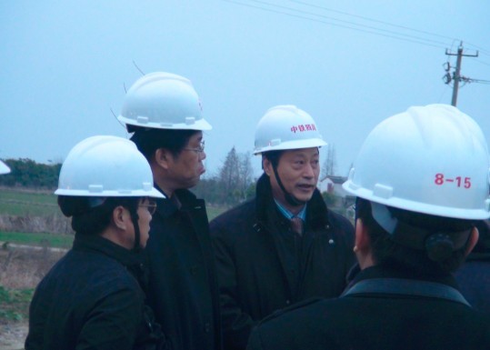 2010年12月24日下午3:30分,集团公司总经理许宝成一行在局指领导胡广森、南京分公司总经理刘志远、南京分公司党委书记丁守皋等的陪同下,来到合福一标七分部工地检查指导工作。许总经理一行重点检查了合福一标七