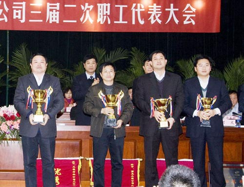 南京分公司总经理刘志远参加局“三会”并上台捧杯
